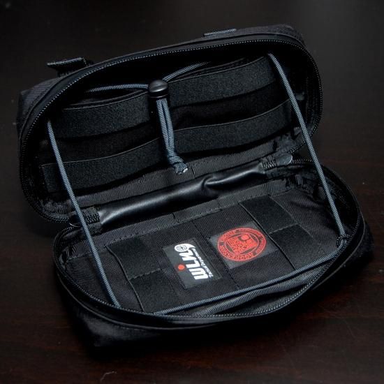 内側には伸縮エラスティックバンドを配し、内容物を固定できるようになっており脱落を防止できます。工夫次第で非常に便利なポーチとなります。